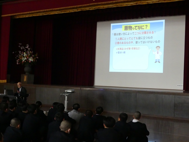 薬物乱用防止教室では、薬物に関する知識を身につけ、正しい判断をするための大切な話を聞きました。
