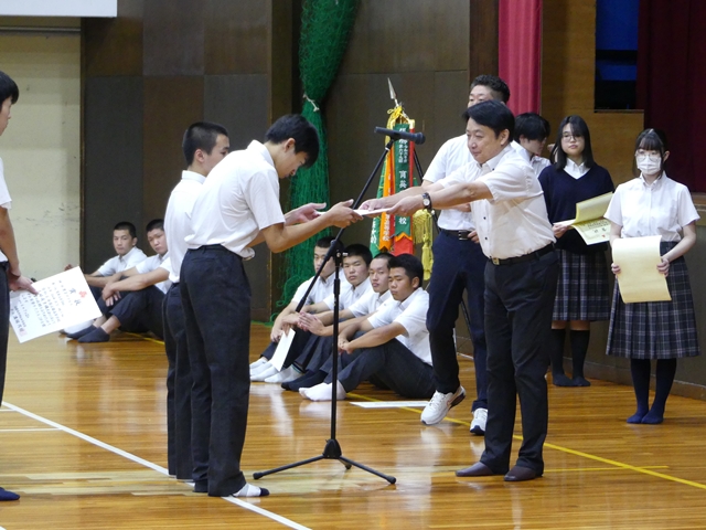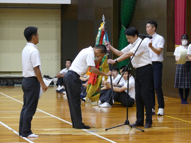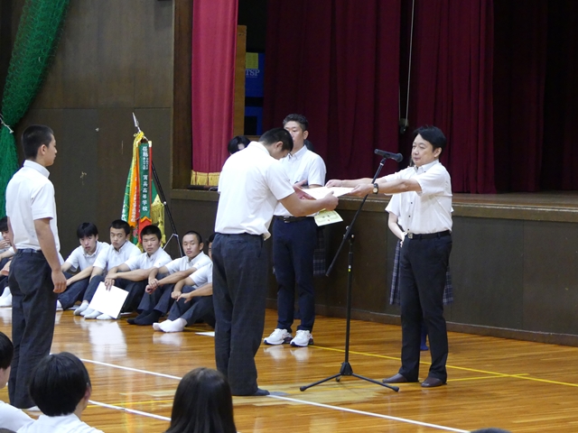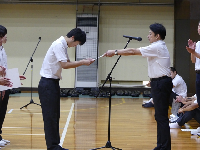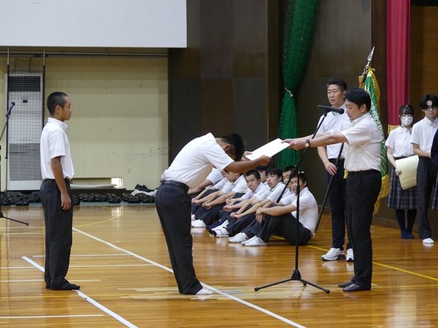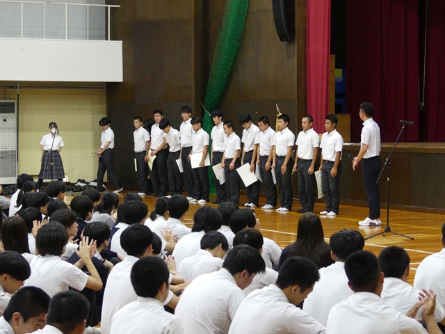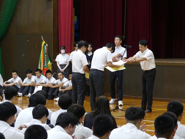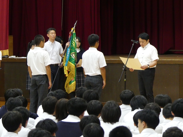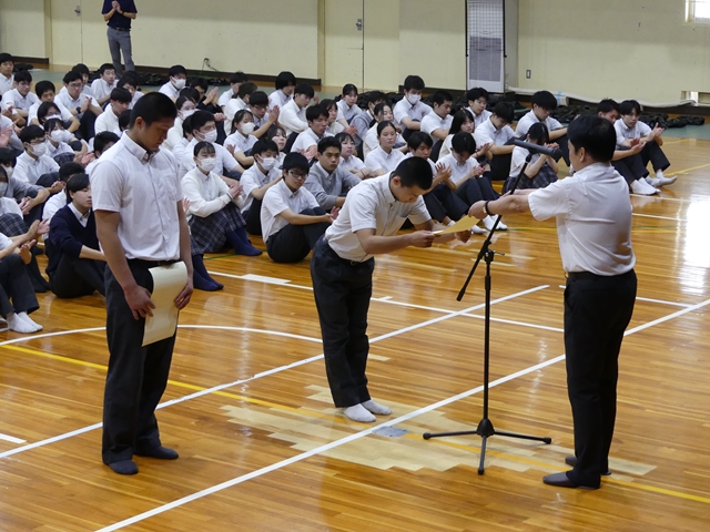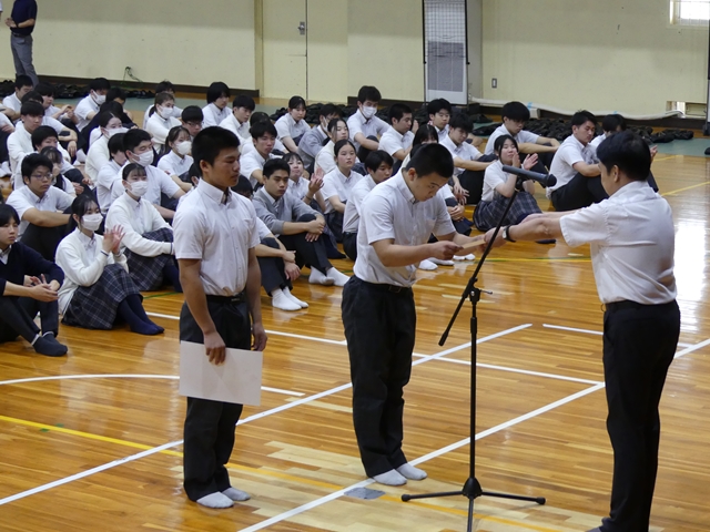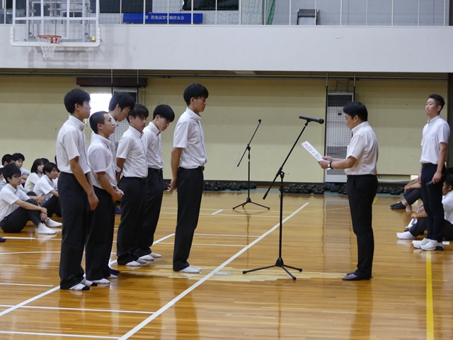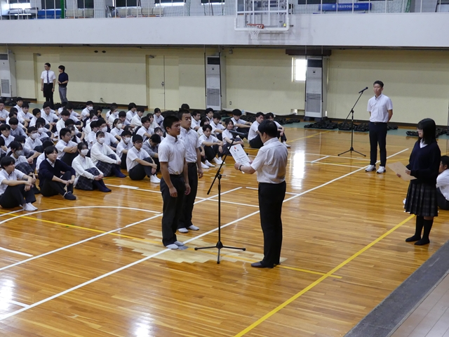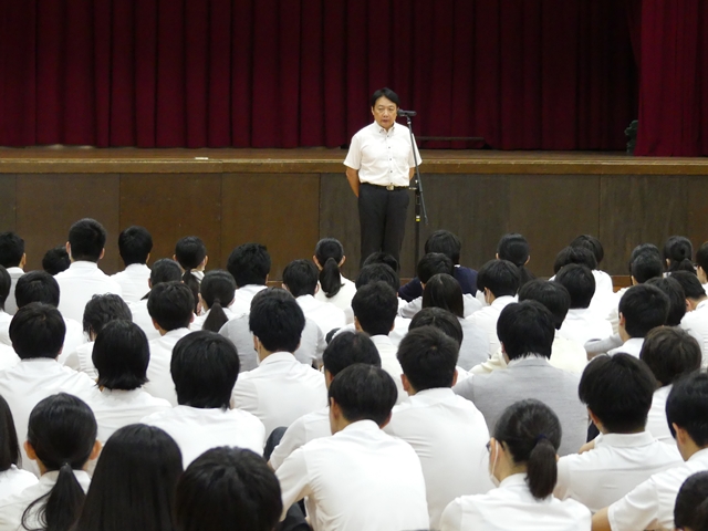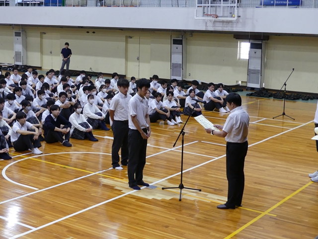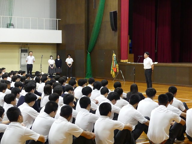 9月2日に2学期始業式を行いました。1学期の終業式と同様に3年生は体育館、1・2年生は各ホームルーム教室でオンラインでの参加の形式で行いました。