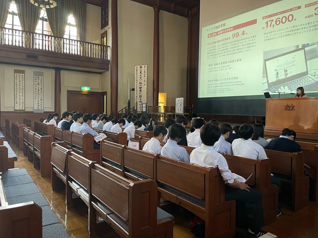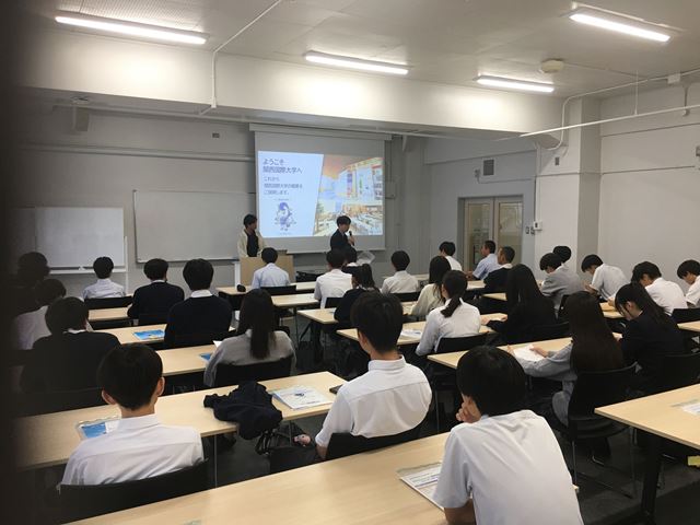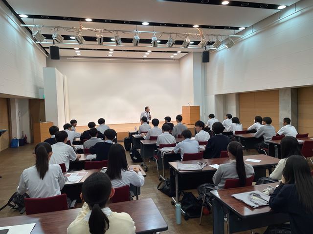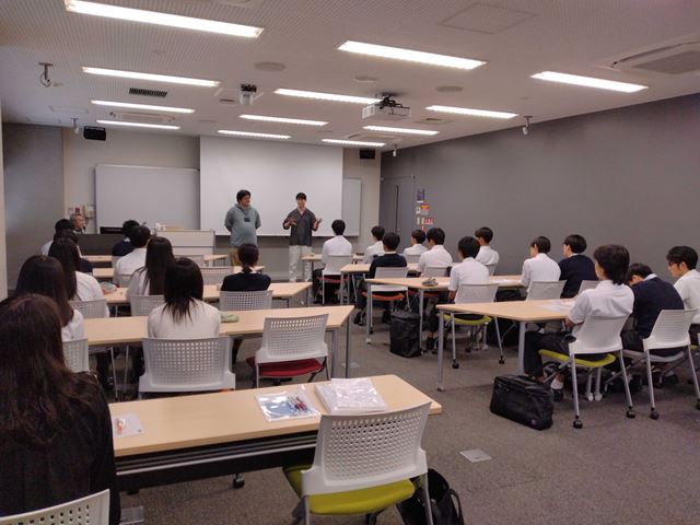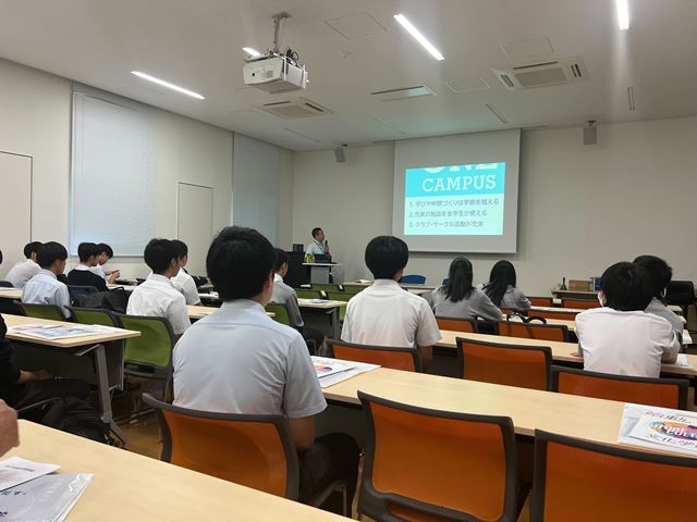 | 10月9日に1年生、2年生は大学見学や就職研修会を行いました。1年生は県内の大学の見学ををすることで進路選択を考えてもらう機会に、2年生は県外の大学を見学をすることで選考を考える機会になりました。 |
