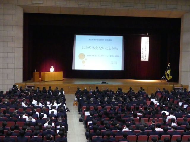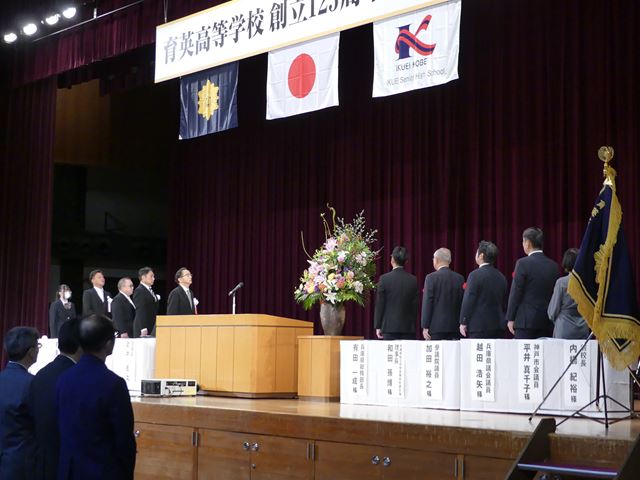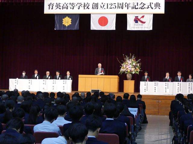 10月26日(土)に神戸常盤アリーナにおいて育英高校創立125周年記念式典を行いました。全校生徒も参加し、多く来賓を迎え盛大に行われました。また、記念講演として劇作家で芸術文化観光専門職大学(豊岡市)学長の平田オリザ様にご講演いただきました。