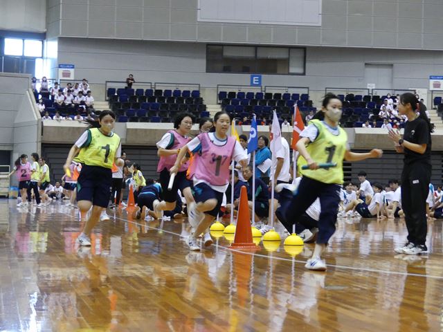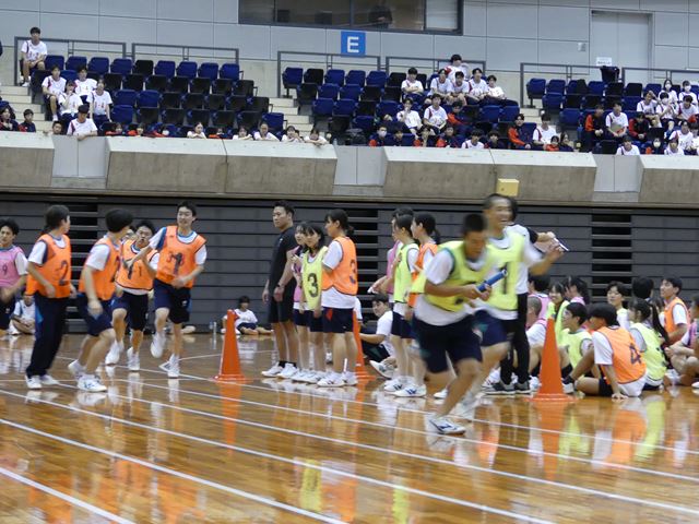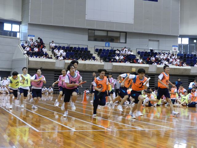 昨年の陸上競技大会とは違った競技を実施することができました。観客席から生徒や保護者の皆様からの熱い応援をいただき、どの競技も大いに盛り上がりました。