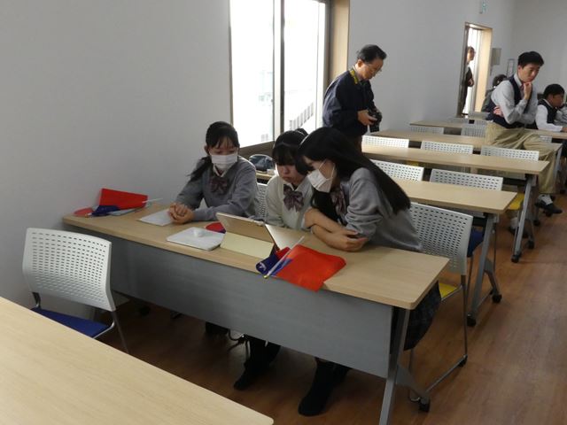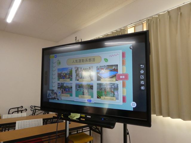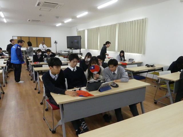 全体でお互いの学校の説明を聞いた後、グループに分かれて生徒同士での会話を楽しみました。