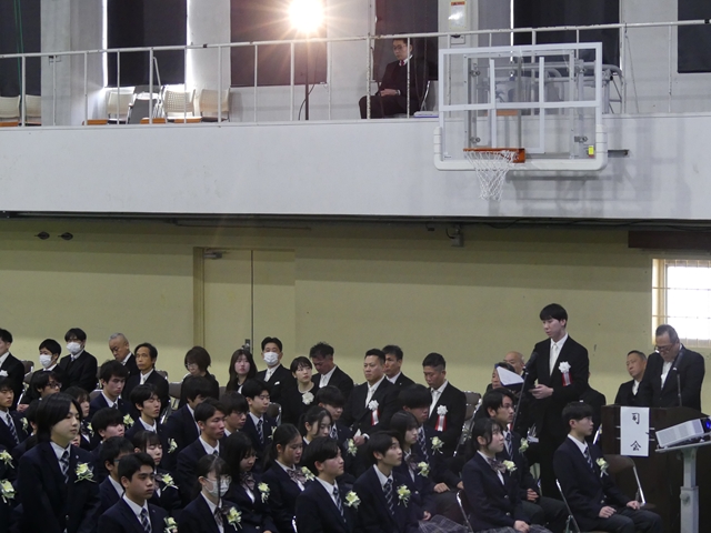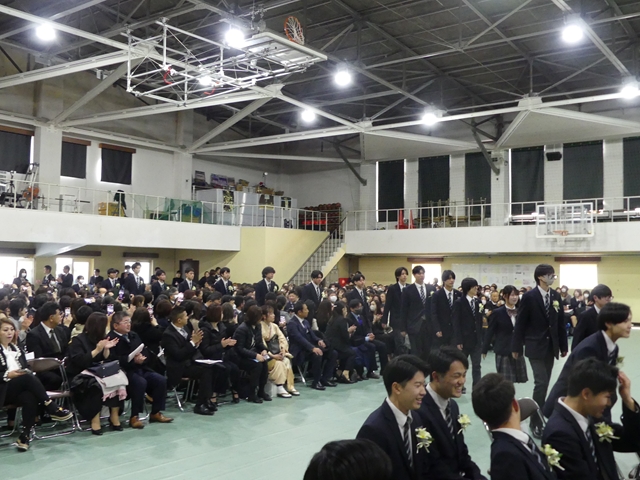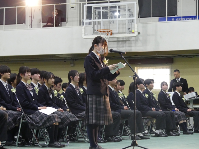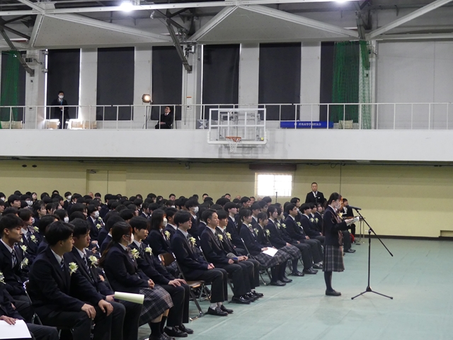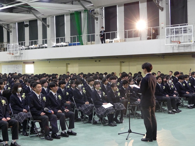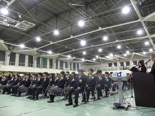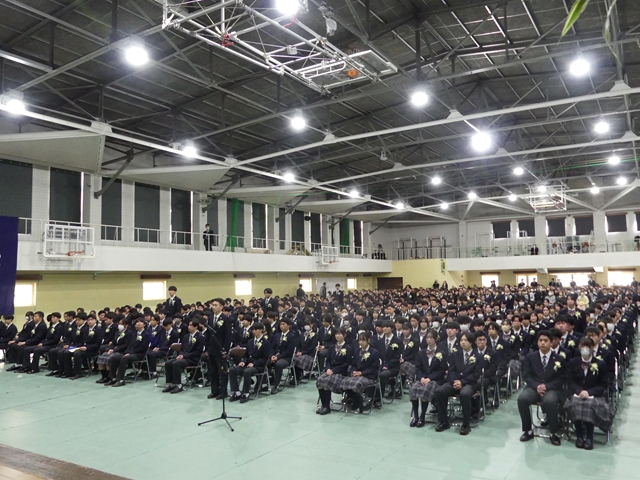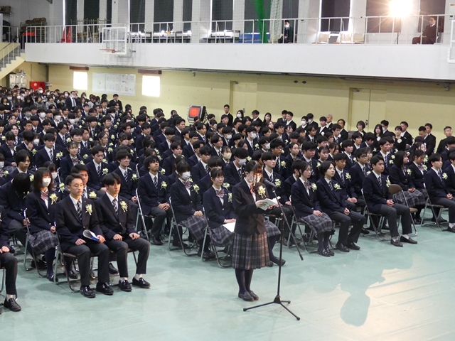 2月15日(土)に卒業式が挙行されました。在校生や教職員、保護者に見守られながら、卒業生たちは新たな門出を迎えました。高校での3年間はどうでしたか?仲間と過ごした日々の思い出を胸に、新たな未来へと羽ばたいてください。卒業生の皆さんのこれからの未来が輝かしいものとなるよう、心よりお祝い申し上げます。