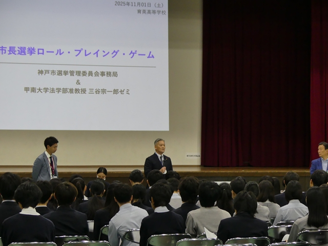 今回は、神戸市選挙管理委員会事務局と甲南大学の方々にご協力いただき、選挙の意義や仕組みについて、わかりやすくお話しいただきました。