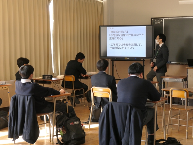 2年生は、各教室に分かれ、自分が興味のある分野の模擬授業を受講しました。大学等の講師の方にお越しいただき、専門的な学びの一端に触れる、貴重な体験となりました。