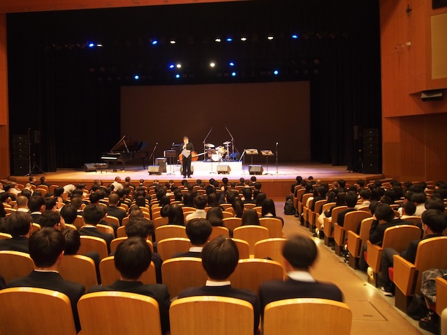 今年度は、SONIC REVOLUTION JAZZ BANDの皆さんをお招きし、迫力満点のJAZZコンサートを堪能しました。様々な楽器が織りなす華やかなメロディに、生徒たちは聞き漏らすまいと深く聞き入っていました。