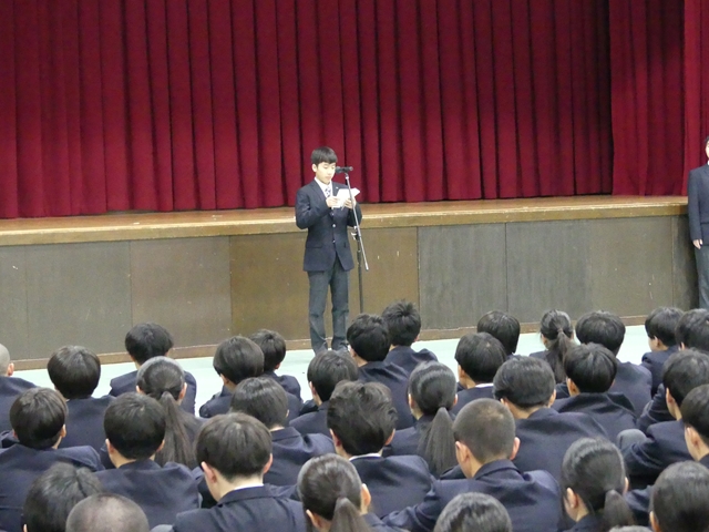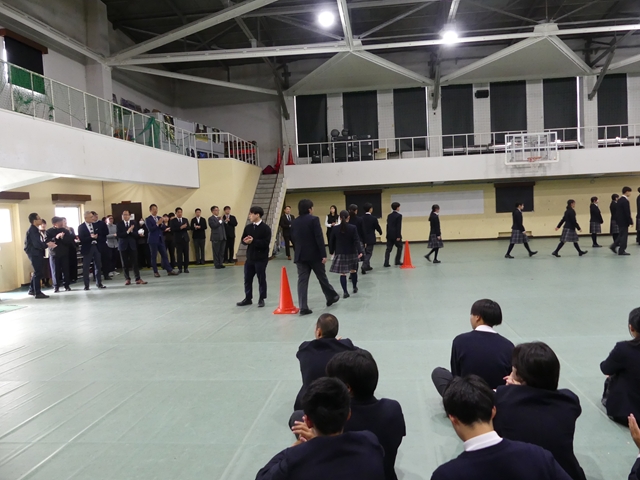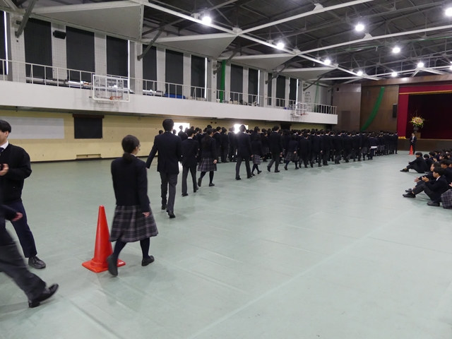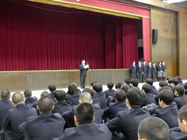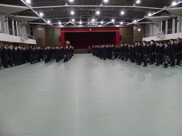 4月9日(木)、本校体育館にて新入生と2・3年生が初めて一堂に会する「対面式」が執り行われました。